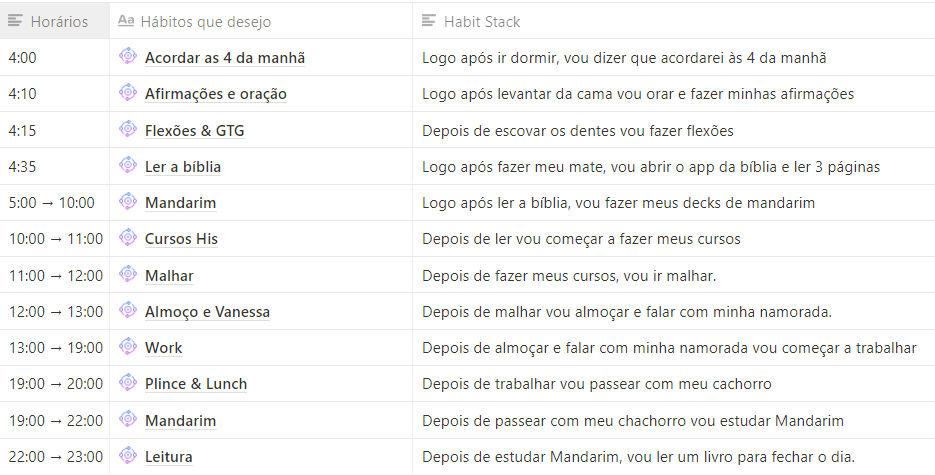 Para mim, o ápice dessa simplificação é criar um mapa de hábitos.